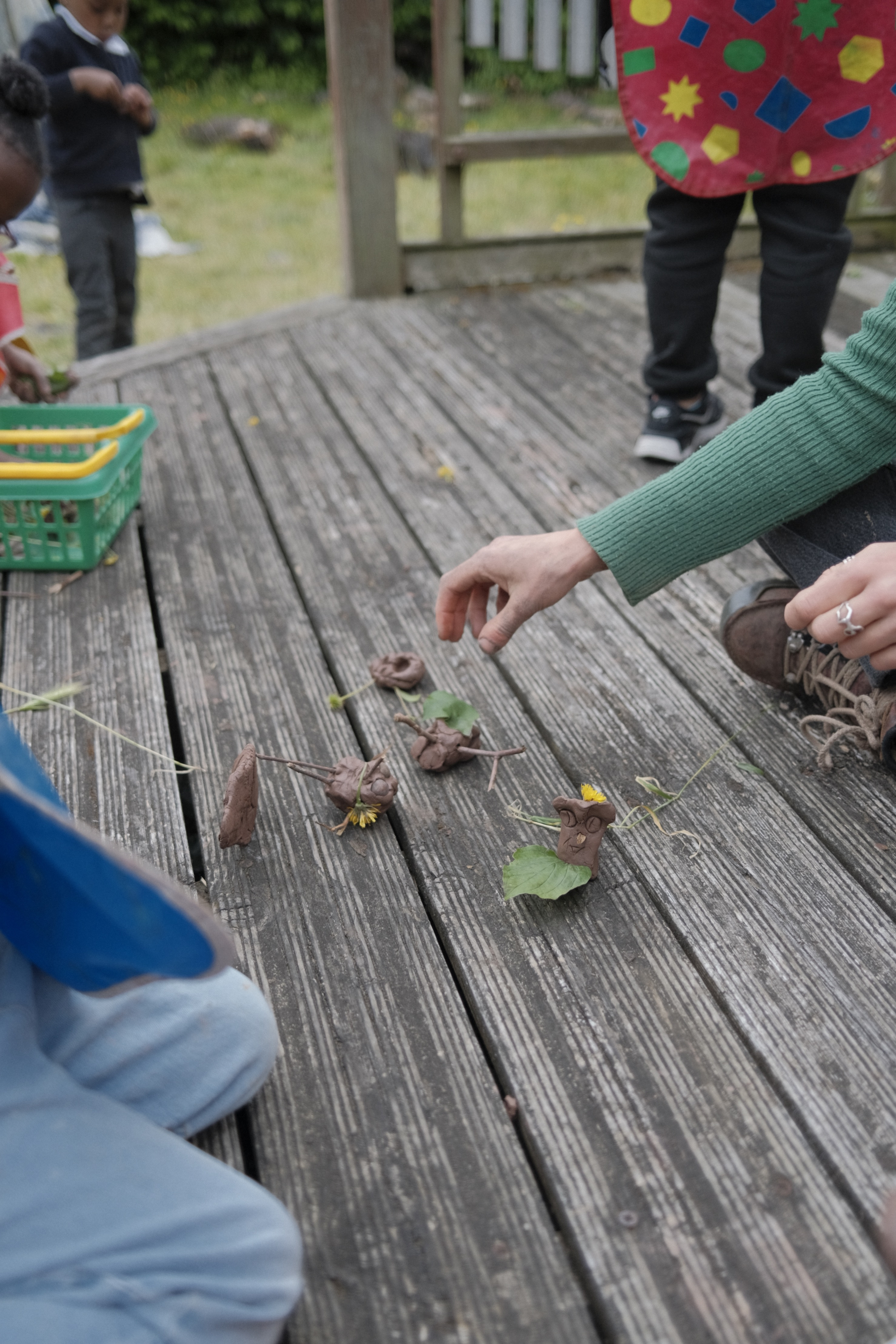Jessy shared her practice of biomaterial production and locally-sourced ceramic making. They created Blobsters that watch over and care for the garden, while contributing to the physical memory embedded in the space. They were created from clay made from the garden itself, mixed with clay from various ecological sites around London, teaching the children about material processes and eco-friendly practices. Using materials already present in the garden highlighted both the intrinsic creative potential of the space and made them learn about circular materials and low-carbon practices.