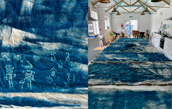 The second workshop by Peas Press involved creating prints using LEGOs, which responded to the stop-motion animation films produced by the children, taught them about traditional, low-cost printing techniques. The prints created through the workshop were then the base of the final cyanotype printed fabrics that make the garden more welcoming and domestic.